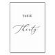 Dieser zarte schwarze Kalligraphietisch aus dreißig Tischnummern eignet sich perfekt für eine moderne Hochzeit. Das romantische minimalistische Design besticht durch eine hübsche und elegante schwarze Typografie auf weißem Hintergrund mit einem sauberen und schlichten Look. Die Karte druckt auf der Vorder- und Rückseite (beidseitig). Andere Tischnummern in der Sammlung werden separat verkauft.