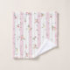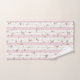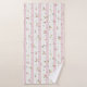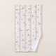 Zartes Blumenmuster Pink Grosses Badetuch Set - Das Blumenmuster mit zarten rosa und gelben Blüten mit grünen Blätter, die auf einem Hintergrund aus rosa und weißen Streifen verteilt sind. Die weißen Streifen sind mit einem dekorativen, spitzenähnlichen Rahmen geschmückt.