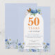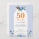 Elegante Schrift-Typografie verbindet sich mit Aquarellfloralen und verleiht dieser Hochzeitstag-Einladung einen weichen, zarten Stil. Vintag in der Ästhetik, pastellblau, staubig orange und weiß. Einfach mit Ihren Veranstaltungsdetails anpassen, ideal für ein 50-jähriges Jubiläum, aber auch für ANY NUMBER editierbar, indem Sie den einfachen Anweisungen folgen.