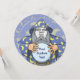 Alter Zauberer mit blauem Kap und Kristallzauberkugel. Verwenden Sie das Foto für Gesicht zum Anpassen. Eigener Text.