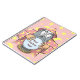 Alter Zauberer mit rosafarbenem Kap und Kristallzauberkugel. Verwenden Sie das Foto für Gesicht zum Anpassen. Eigener Text.