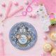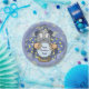 Alter Zauberer mit blauem Kap und Kristallzauberkugel. Verwenden Sie das Foto für Gesicht zum Anpassen. Eigener Text.