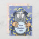 Alter Zauberer mit blauem Kap und Kristallzauberkugel. Verwenden Sie das Foto für Gesicht zum Anpassen. Eigener Text.