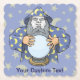 Alter Zauberer mit blauem Kap und Kristallzauberkugel. Verwenden Sie das Foto für Gesicht zum Anpassen. Eigener Text.
