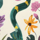 Dieses Kunstwerk besticht durch eine skurrile und bezaubernde Gartenszene mit einer Vielfalt an lebendigen Blume, Blätter und spielerischen Elementen, die vor einem weichen cremefarbenen Hintergrund Set tragen. Die Komposition ist voll von üppiger Vegetation, blühenden Blume in Rosa, Gelb und Püree, und gelegentlich erscheint eine Schlange durch das Blätterdach. Das Design verbindet Naturelemente mit einer Touch von Fantasie und schafft eine lebendige und fantasievolle Atmosphäre. Die Verwendung von satten Farben und dynamischen Formen trägt zum Gefühl von Bewegung und Vitalität in der Szene bei.