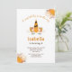 An dieser Vorderseite dieser wunderschönen, gürteligen Einladung steht der Text "Ein magischer Tag ist unterwegs" in reicher Kürbisorange in beliebter Schriftzypografie, zusammen mit trendigen einhornigen Ohren und Augen mit einem orangefarbenen und schwarzen Horn und einer Krone von handgemalten, rosa Aquarellfarben-Blume. Der personalisierbare Geburtsname des Mädchens erscheint in orange, gefolgt von ihrem Alter und allen Party-Details, die Sie auch mit dieser Vorlage personalisieren können. Die Vorderseite der Karte grenzt oben und unten an orangefarbene Blume, Herbstblätter und Sterne. Die Rückseite weist ein passendes Muster von Herbstlauben und Sternen auf. Diese Einladung ist perfekt für Herbst- oder Halloween-Geburtstage.