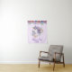 Tapestry mit einer eleganten Aquarell-Illustration, die eine Aquarellmama und ein Baby-Einhorn mit lila Mane und Vorhaut enthält. Die Blume ist von zarten, orangefarbenen Blüten umgeben. Ein Blumenstrauß in Aquarelltönen an der oberen Grenze.