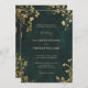 Eine elegante, moderne Hochzeitsveranstaltung mit einem minimalen illustrierten Rahmen von Baumzweigen, üppig, wildem Grün und Kaskadenblättern. Diese Einladung, die mit Akzenten des Goldes über einen glitzernden smaragdgrünen Hintergrund übersät ist, erfasst das Wesen eines verzauberten Waldes für jede Jahreszeit - Frühling, Sommer, Herbst oder Winter. Mit einer Touch moderner Kalligrafie ist es die ideale Wahl für Brautpaare, die von einer Märchenwaldhochzeit, einer zauberhaften Waldfeier oder einem Märchengarten träumen. Diese Einladung ist perfekt für jeden, der von der Schönheit eines smaragdgrünen, märchenhaften Waldthemas inspiriert ist.