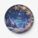 Die Weihnachtszeit - eine Zeit voller Staunen, Freude, Hoffnung, Erwartungen und Überraschungen. Diese Teller sind mit goldenen Schneeflocken verziert, die im blauen Nachthimmel über dem Winterwald wirbeln. Schöne Teller für Weihnachten Party / Open House! Eigener Text.