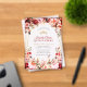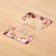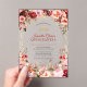 Die rustikale, holzinspirierte Umgebung mit lebhaften Blume im Aquarellstil in Rot-, Rosa- und Cremetönen, die von Grünpflanzen und Goldverzierungen geprägt sind, lädt zum Verweilen ein. Eine junge Frau in einem eleganten Scharlachrot ist der Mittelpunkt, umgeben von Knorpelschmetterlingen und subtilen funkelnden Details, die ein raffiniertes und feierliches Design schaffen.