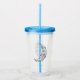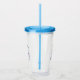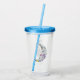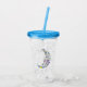 Dieser Acryl-Drink-Wäscher mit Stroh und Deckel hat einen magisch weißen Halbmond mit einem Gesicht und rosa Lippen mit bunten abstrakten Markierungen in verschiedenen Formen in blau, gelb und lila.