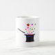 Ein Zauberer, der mit magischen Sternen auf weißem Hintergrund zaubert