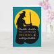 Zauberspruch Hexe und Mond. "Doppel-, Doppel- und Trostpfeiler;. Feuer brennen und Kessel-Blase." Grußkarte. Nicht nur die Hintergrundfarbe und die Farbe der Schrift können geändert werden, auch können Sie das Schreiben ändern und Ihren eigenen speziellen Zauber hinzufügen. Der Mond kann auch entfernt werden, wenn Sie eine Tageslichtszene bevorzugen. Ideal für Halloween- und Geburtstagspartys.