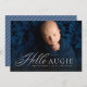 Diese 1-Foto-Geburtsankündigung enthält neben einem Namen oder Spitznamen ein elegantes Drehbuch "hello". Es enthält auch Platz für den Namen des Babys und andere Details am unteren Ende eines horizontalen Fotos. Die blaue Farbe des Backers macht es perfekt, um einen kleinen Jungen anzukündigen und sich mit neugeborenen Fotos abzustimmen. Weitere Farben sind ebenfalls verfügbar.