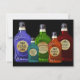 Magic Potion Einladungen mit Flaschen verschiedener farbiger Flüssigkeit mit Etiketten, die "Tonic" "Newt's Eyes" "Vampire Fangs" "Gift" "Vampirblut" lesen. Die Rückseite der Einladung ist leer, bereit für Sie, um Ihre Event-Details anpassen. Verwenden Sie einfach die Schaltfläche Anpassen, um Text auf der Rückseite hinzuzufügen. Ideal für Halloween-Party-Einladungen.