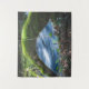 Langes Foto eines Baumes über einem Fluss. Schönes grünes Moos über dem Baum und Schneefälle machen die Szene recht magisch.