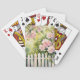 Rosa Blume wachsen um einen verwitterten, weißen Zaun auf diesem Kartenspiel herum. Süß und romantisch, und sehr hübsch! Ideal für alle, die Blume und Gärtnern Lieben.