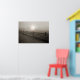 Zaun und Sonnenbrand durch Nebel bei Sharon Poster