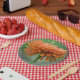 Auf dieser Papiertafel befindet sich ein wunderschönes orangefarbenes Zinnia. Ideal für Party, Duschen und Picknicks!