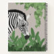 A solitary zebra walking amongst the monstera, ivy and bird of paradise leaves.