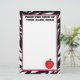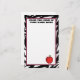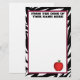 Briefpapier, das eine Zebradruckgrenze und eine rosa Ordnung kennzeichnet. Rote Apfelillustration in der unten rechtsecke. Des Textes Mitte oben. Linie 1 liest "vom Schreibtisch von" Linie 2 liest "Ihren Namen, hier", das aller Text personalisiert sein kann. Wenn Sie die Schriftartgröße, Art ändern möchten oder färben, können Sie das Entwurfswerkzeug benutzen.