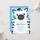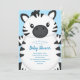Ein zebrafarbenes Cartoon-Zebra-Babyduschdesign, das sich perfekt für ein Safari-Party eignet! Der niedliche Zebra hat einen blauen Hintergrund, der es für einen Jungen auf dem Weg gut macht!