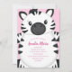Dieses Design-Thema der Zebra Baby Shower Collection mit einem einfach Adorable Zebra auf einer rosa, blauen oder grünen Palette feiert Ihren ganz besonderen Geburtstag und Ihre Baby-Dusche. Personalisieren Sie dies mit den Details Ihrer Geburtstagsparty und Babydusche einfach und schnell. Drücken Sie einfach die Schaltfläche Anpassen, um den Stil und die Platzierung des Textes weiter zu verändern und zu formatieren. Erstellt von Rachel Alvia, © Alicorn Studio