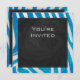 Zebra Blau und Weiß mit Monogramm Einladung