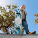 Zebra Blau und Weiß mit Monogramm Skateboard