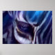 Zebra Blue stammt aus der Serie "Spirit Of The Wild" von Carol Cavalaris. Zebra, Sie sind ein exotisches Geheimnis in Schwarz, Weiß und Blau.