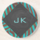 Zebra Brown und Aquamarin mit Monogramm Getränkeuntersetzer