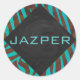 Zebra Brown und Aquamarin mit Monogramm Runder Aufkleber