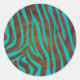 Zebra Brown und Aquamarin Print Runder Aufkleber