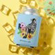 Ein Zebra mit afrikanischen Gänseblümchen vor blauem Hintergrund