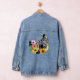 Ein Zebra mit afrikanischen Gänseblümchen vor blauem Hintergrund