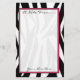 Briefpapier, das einen Schwarzweiss-Zebradruckhintergrund kennzeichnet. Mitte ist mit rosa Grenze bloß. Text ist völlig kundengerecht.