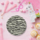 Dieser hübsche PapierTeller ist für jedes mögliches Party mit einem Zebra- oder Tier-/Safarithema perfekt. Das Zebradruckmuster wird in den Schatten des Schwarzen und der Lichtbeige/des ecru mit einem leicht strukturierten Effekt gemacht, der addiert wird, um ihn Vintag schauen zu lassen. Diese sind stilvoller PapierTeller für Ihre spezielle Feier.