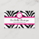 Zebra-Druck u. rosa Spitze-Monogramm Visitenkarte