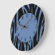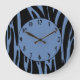 Custom Wall Clock hat ein lustiges schwarz-blaues Muster aus Tierdruckstreifen mit einer matten Schriftart-Uhr Gesicht.