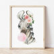 Fügen Sie mit diesen wunderschönen Kunstdrucken die Touchs in das Kinderzimmer oder Kinderzimmer Ihres Babys ein! Das Design umfasst Zebra, rosa Kaugummi, rosa Aquarell-Blume und Grünpflanzen.