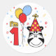 Erster Geburtstagsspass "I'm 1" mit coolem Zebragegesicht, großer Zahl 1 und farbenfrohen Ballons. Wenn du Dschungel, Safari und Zoo Tiere Liebe, Liebe du diesen Zebra in einem Geburtstagshut.