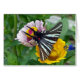 Ein wunderschöner Zebraschmetterling in meinem Blumengarten, der neben einem japanischen Käfer ein Zinnia genießt.