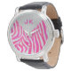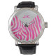 Zebra Hot Pink und Weiß mit Monogramm Armbanduhr