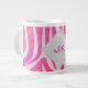 Zebra Hot Pink und Weiß mit Monogramm Jumbo-Tasse