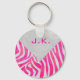 Zebra Hot Pink und Weiß mit Monogramm Schlüsselanhänger