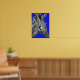 Eine Reproduktion eines Originalgemäldes von Georgia Pistolis. Es wird digital mit blauem Hintergrund reproduziert. Das Bild wird in drei anderen Farben gemacht und funktioniert wie eine Gruppierung.