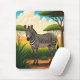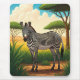 Ein Zebra steht elegant zwischen üppigen Gräsern und Akazienbäumen. Der blaue Himmel und die verstreuten Wolken schaffen eine ruhige Kulisse für die Szene.