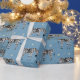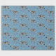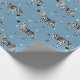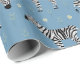 Boho wrapping paper with zebra in the savanna pattern on light blue background.