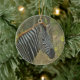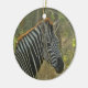 Porzellanschmuck mit einem nahen Foto eines Zebra-, Kopf- und Schulterprofils. Foto im Phinda Forest Preserve, Südafrika, Juli 2012.