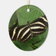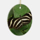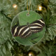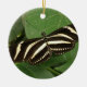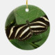 Dieses hübsche, im Stil eines Anhängers gehaltene Dekor zeigt ein Foto eines wunderschönen tropischen Schmetterlings. Diese Art wird als Zebra Longwing Butterfly (Heliconius charithonia) bezeichnet und ist in lebhaften schwarz-weißen Streifen über jedem Flügel bedeckt. Es kommt aus Amerika. Das Foto wurde mit Makrofotografie für ein erstaunlich detailliertes Ergebnis aufgenommen.